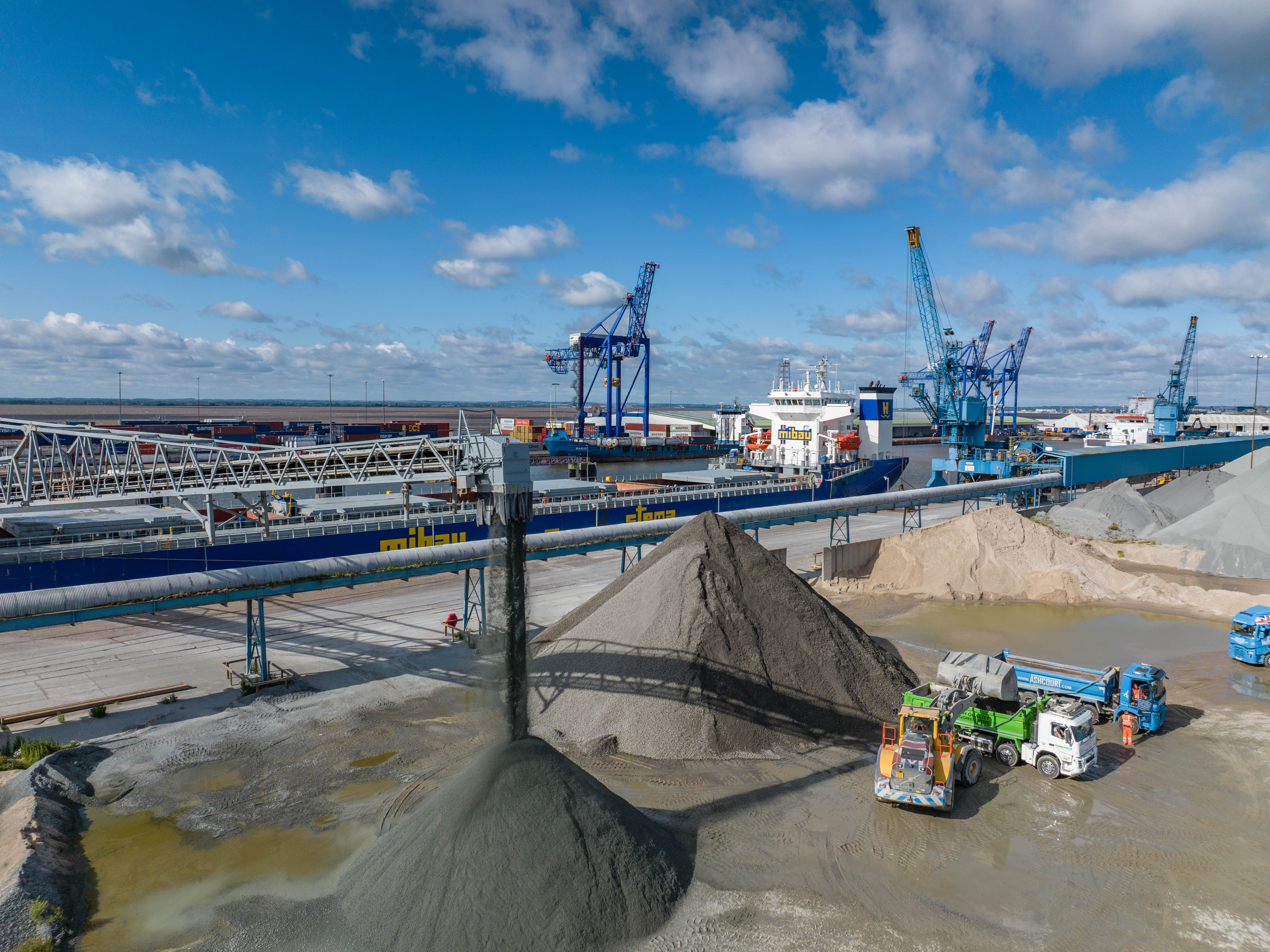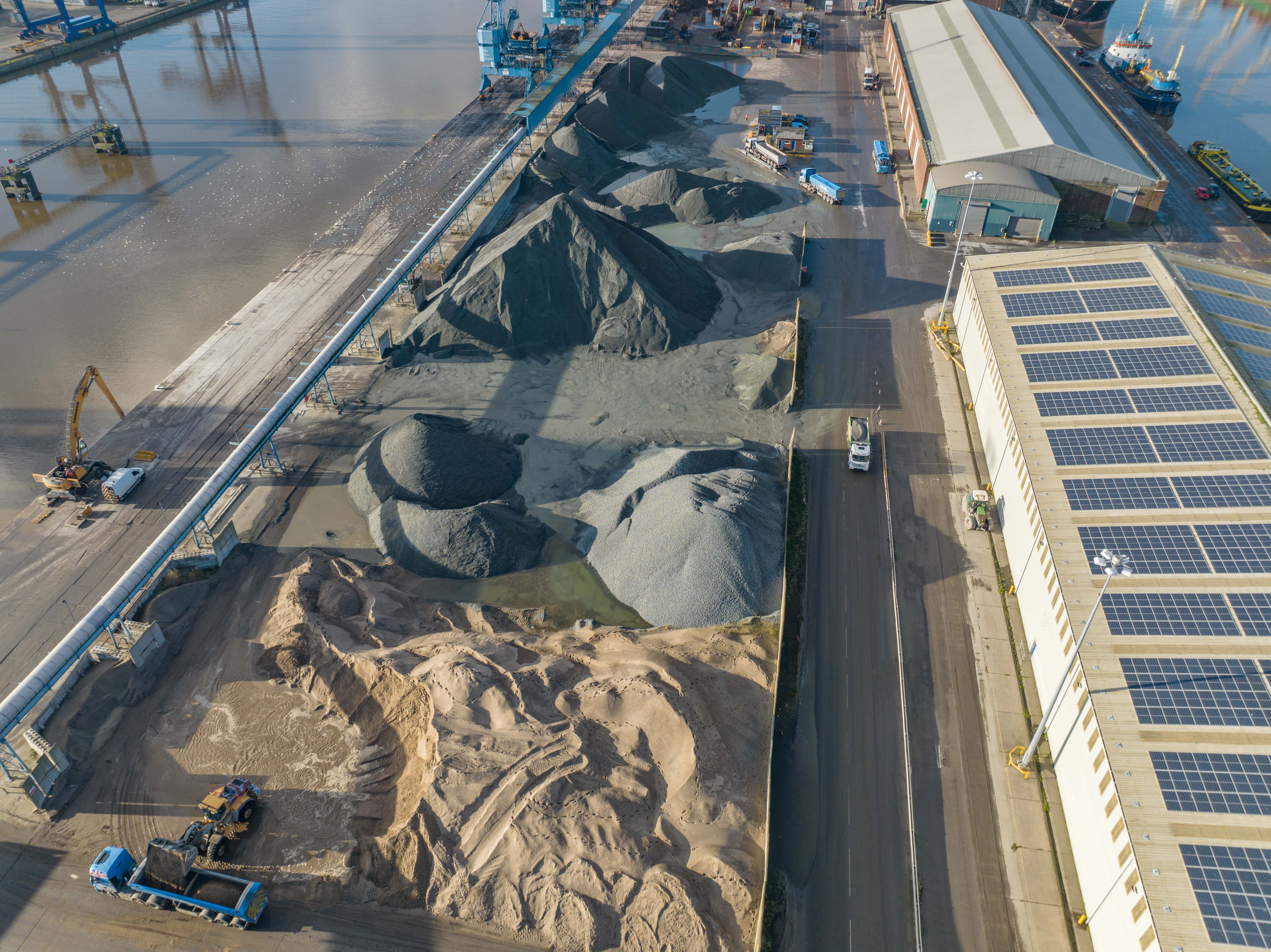 Our aggregate yard on Queen Elizabeth Dock is an integral part of our aggregate operations, importing STEMA Mibau aggregates directly from the ferry to our yard.